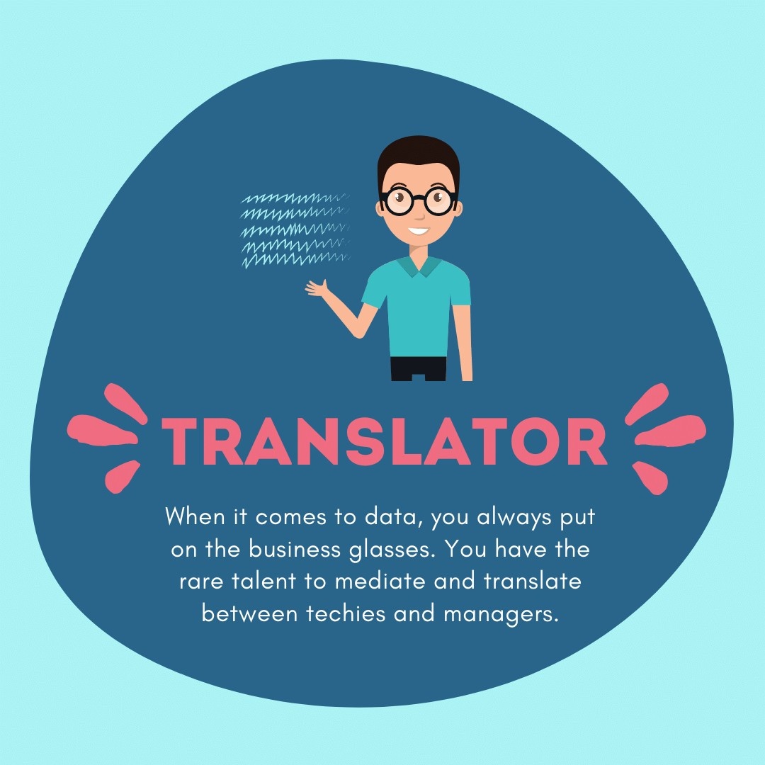Data Translators help ensure that the deep insights generated through sophisticated analytics translate into impact at scale in an organization. You are a rare breed and the new buzz in the data job roles.